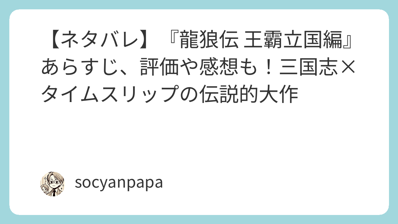 #龍狼伝 #王霸立国編 #三国志 #タイムスリップ #歴史ファンタジー #月刊少年マガジン #電子書籍 #レビュー #おすすめ漫画 #講談社漫画賞 #現実逃避