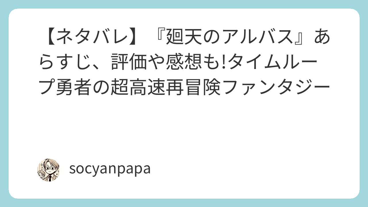 #廻天のアルバス #タイムループ #ファンタジー #週刊少年サンデー #牧彰久 #箭坪幹 #電子書籍 #レビュー #おすすめ漫画 #連載中 #RTA #効率重視 #現実逃避