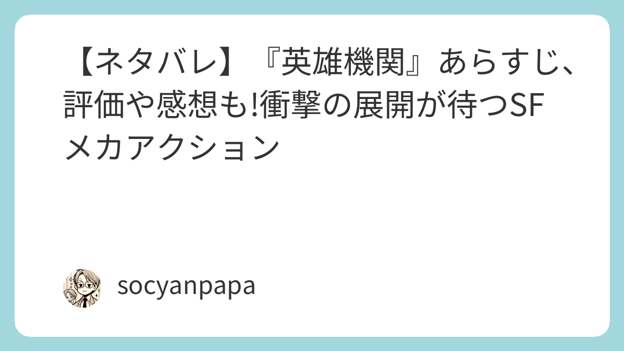 こんにちは!今回は、ジャンプ+で連載中の話題作『英雄機関』をレビューします。