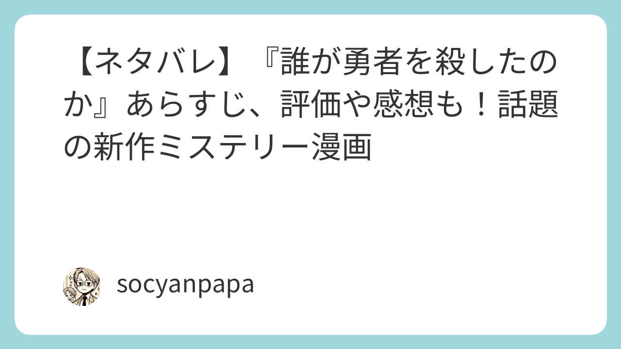 こんにちは!今回は、SNSで話題沸騰中の**『誰が勇者を殺したのか』**をレビューします。