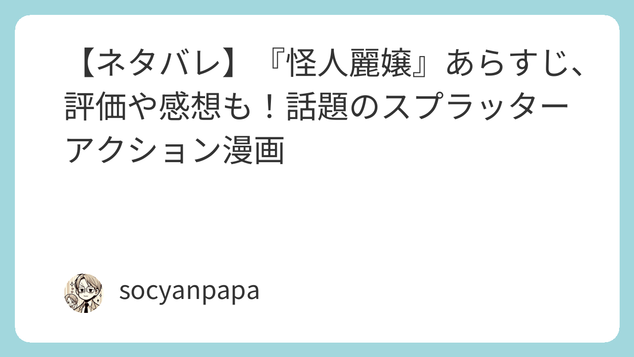 こんにちは!今回は、SNSで話題沸騰中の**『怪人麗嬢』**をレビューします。