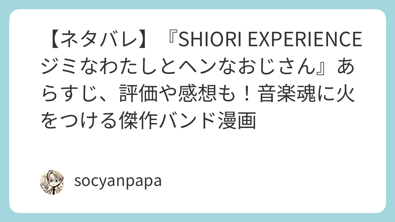 『SHIORI EXPERIENCE ジミなわたしとヘンなおじさん』は、音楽への愛と青春の熱さが詰まった傑作バンド漫画です。