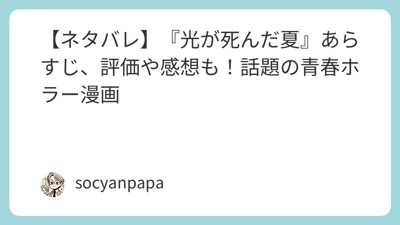 こんにちは!今回は、累計発行部数350万部を突破し、2025年夏にアニメ化もされた話題沸騰中の**『光が死んだ夏』**をレビューします。