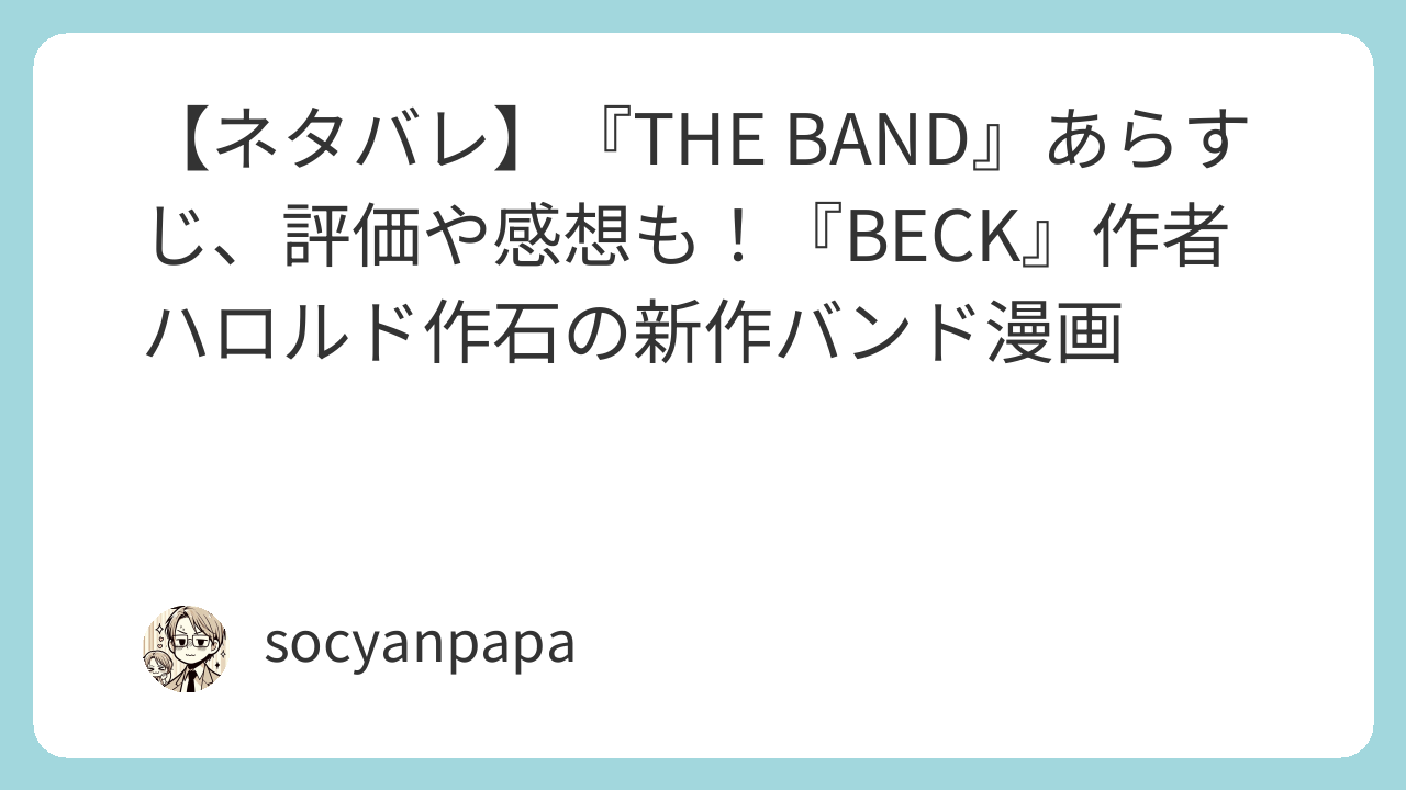 こんにちは!今回は、**『BECK』で一世を風靡したハロルド作石先生の最新作『THE BAND』**をレビューします。