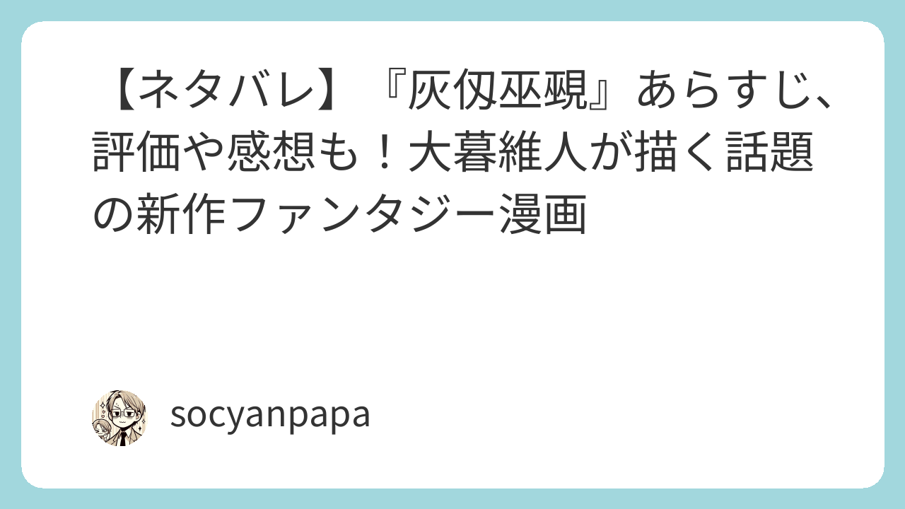 #灰仭巫覡 #カイジンフゲキ #大暮維人 #ファンタジー漫画 #週刊少年マガジン #電子書籍 #レビュー #おすすめ漫画
