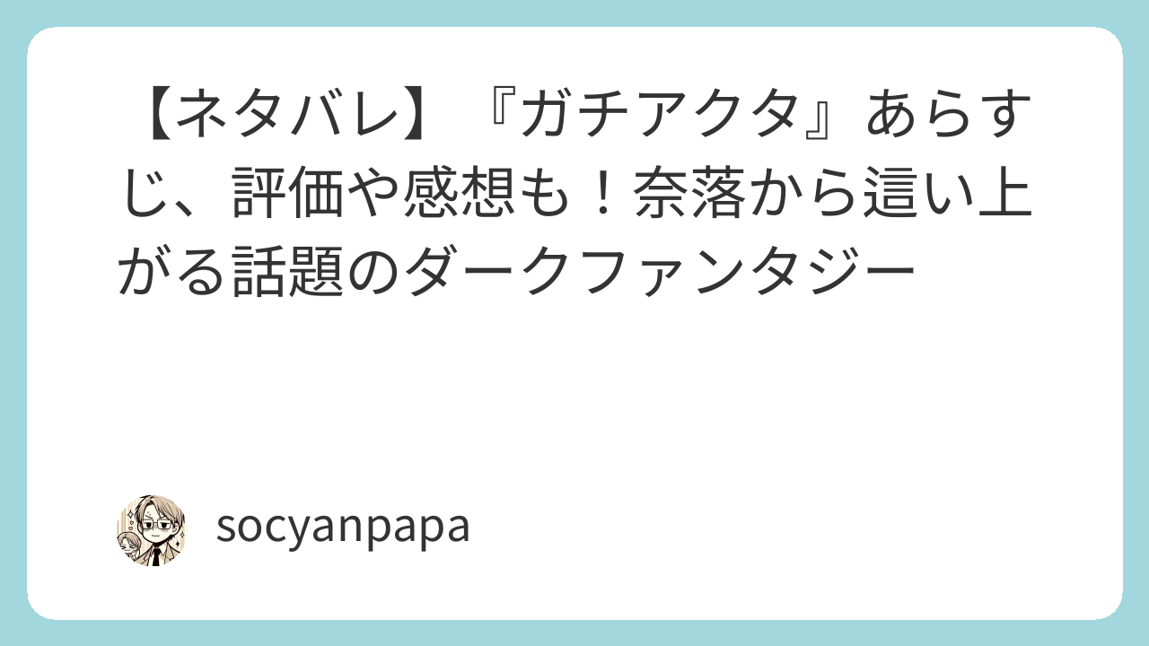 #ガチアクタ #ダークファンタジー #バトル漫画 #週刊少年マガジン #アニメ化 #電子書籍 #レビュー #おすすめ漫画 #2025年夏アニメ