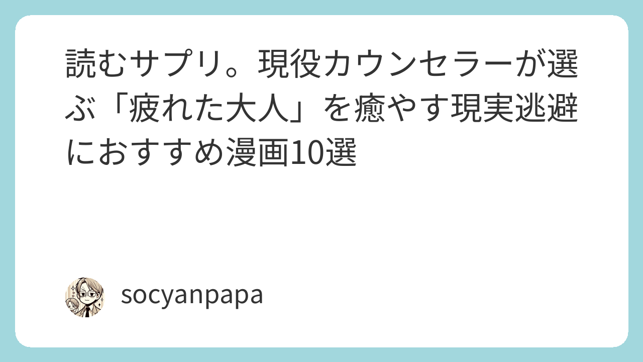 私はこれまで多くの働く人々の悩みに触れてきましたが、心の疲れに効く特効薬こそ、手軽にトリップできる「漫画」だと確信しています。