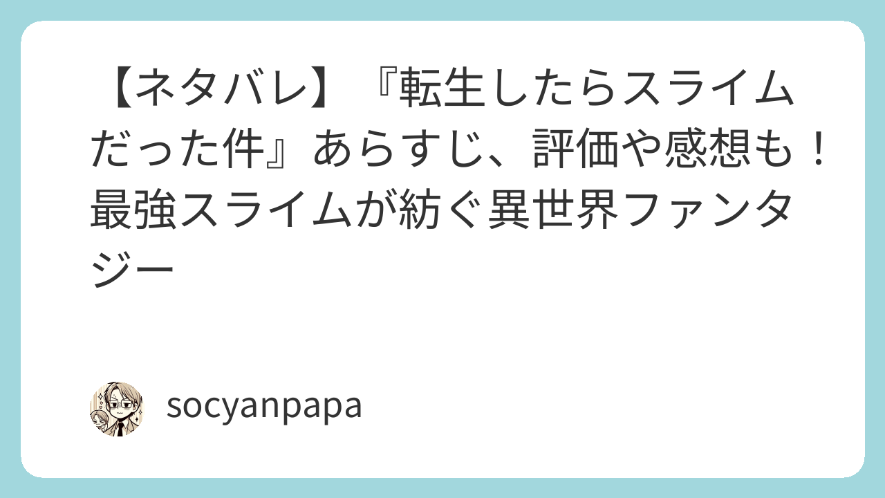 こんにちは!今回は、全世界シリーズ累計4,500万部&アニメ累計視聴数30億回を突破し、原作小説がついに完結した『転生したらスライムだった件』をレビューします。
