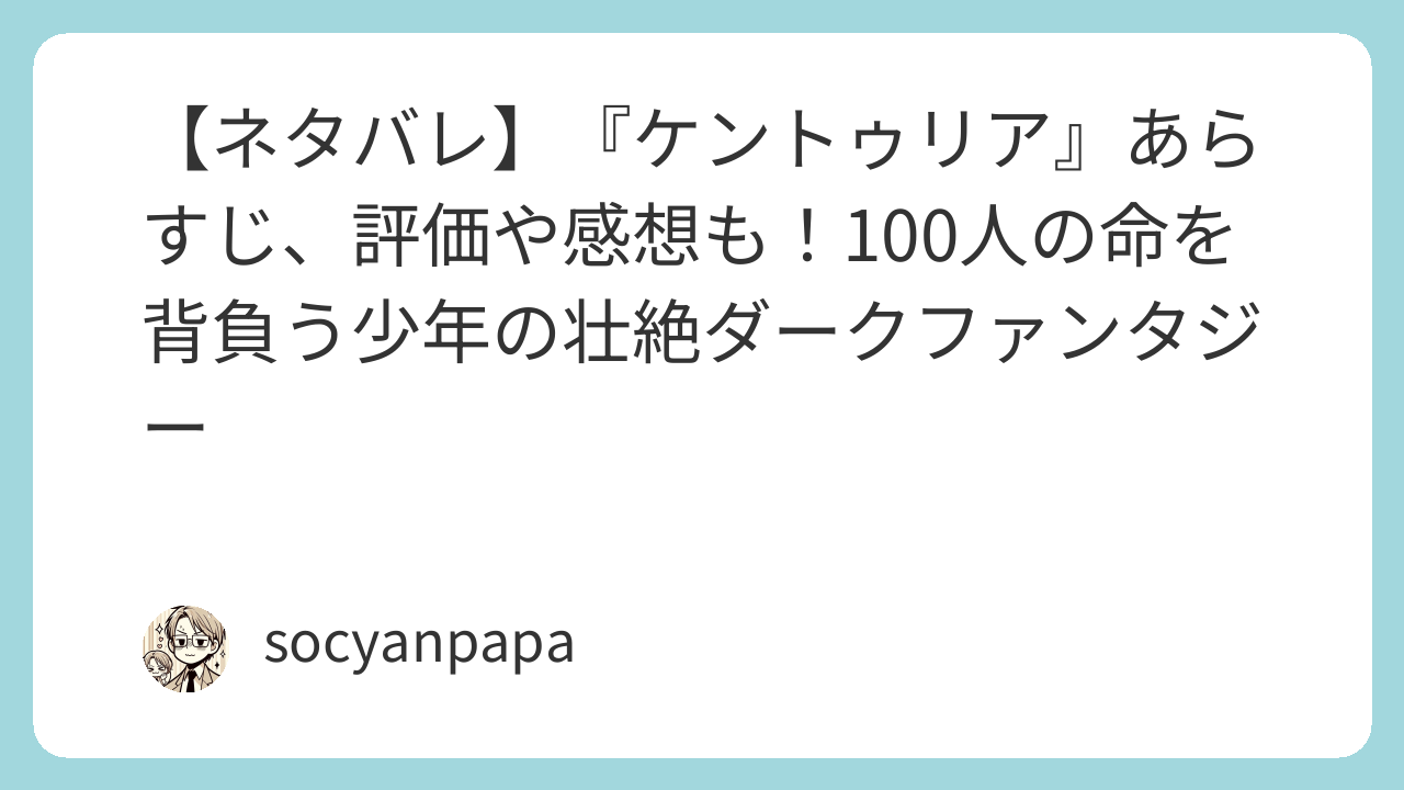 こんにちは!今回は、少年ジャンプ+で大注目の『ケントゥリア』を徹底レビューします。