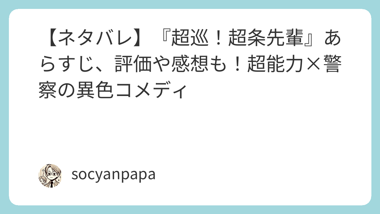 #超巡超条先輩 #ポリスコメディ #超能力 #週刊少年ジャンプ #沼駿 #左門くんはサモナー #アニメ化決定 #電子書籍 #レビュー #おすすめ漫画 #完結済み #2026年アニメ化 #現実逃避