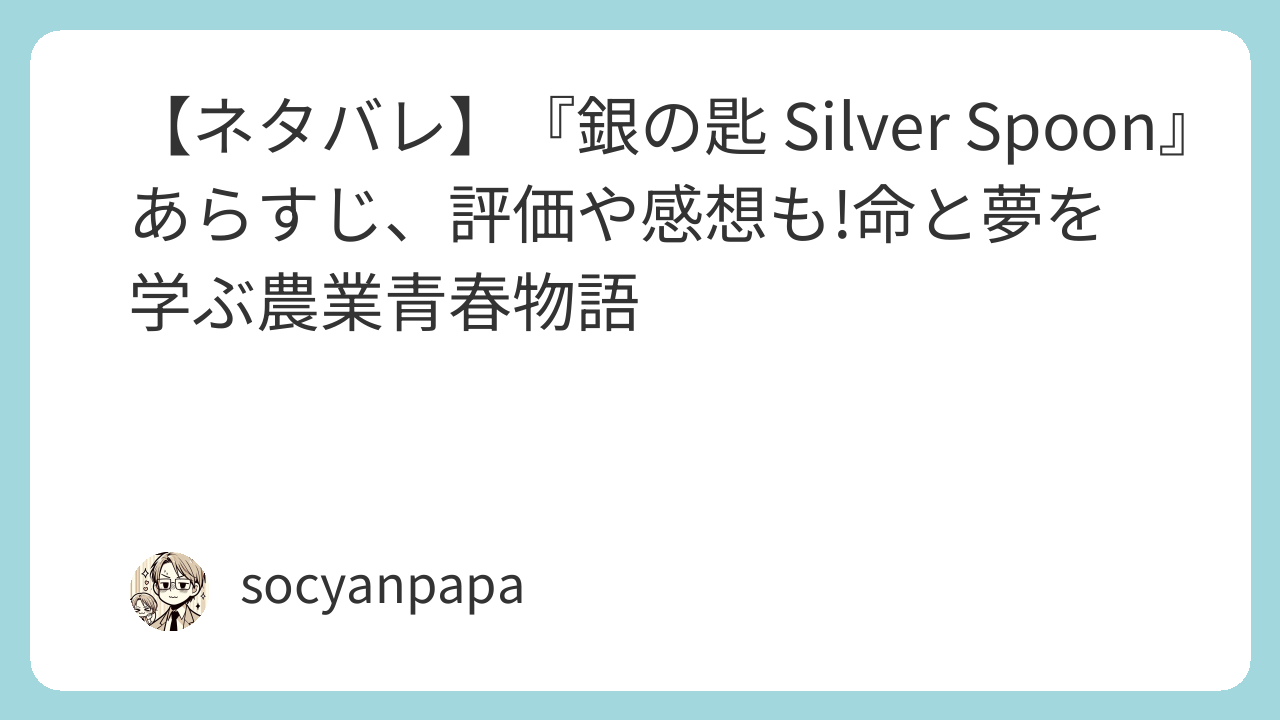 #銀の匙 #SilverSpoon #農業漫画 #青春漫画 #週刊少年サンデー #荒川弘 #鋼の錬金術師 #アニメ化 #完結済み #電子書籍 #レビュー #おすすめ漫画 #感動 #命をいただく #食育 #現実逃避